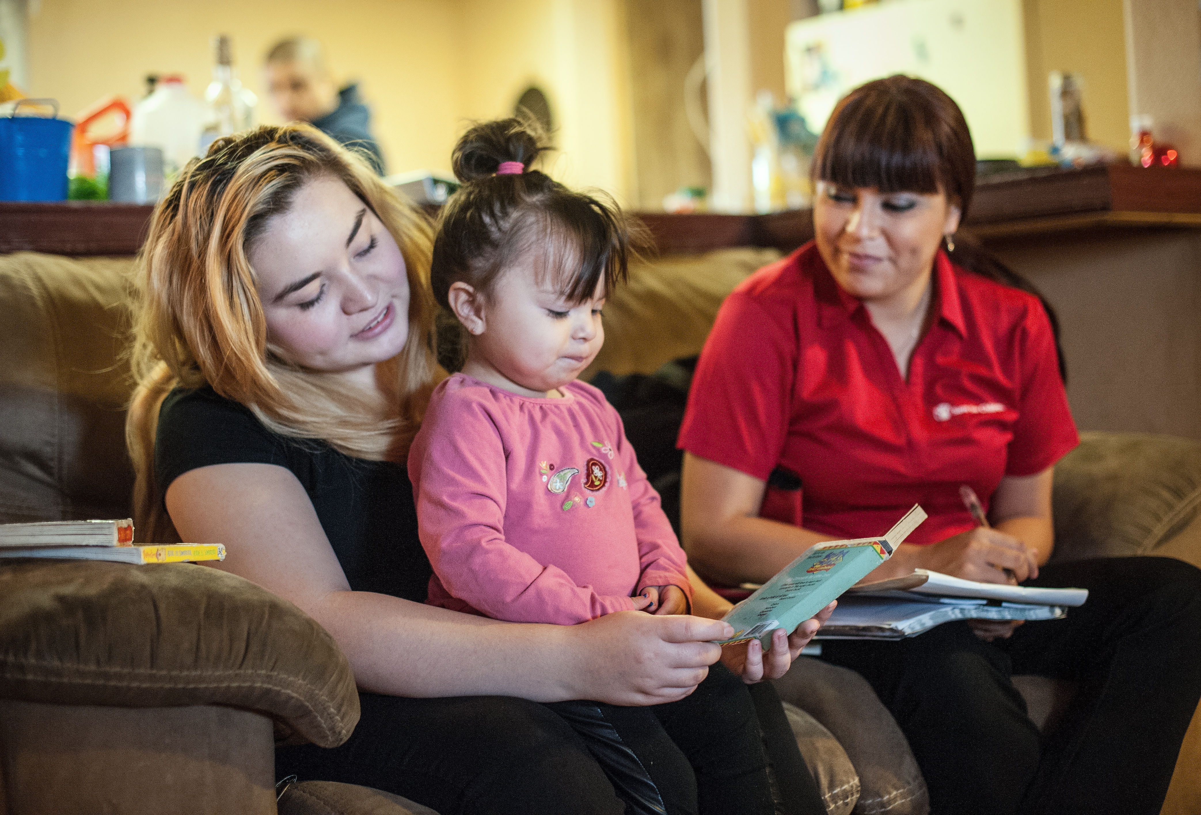 Through its Literacy programme, Save the Children provide children in kindergarten through to 6th Grade (ages 5-12,) with the tools they need to develop reading skills and the guidance and support they need to grow as readers. Second grader Wendy, seven (pictured above) looks through the books available during her guided independent reading program (GIRP) as part of Save the Children's in-school literacy programme at her elementary school in California’s Central Valley. Also pictured here two-year-old Aliyah and her mum, Emma, are part of Save the Children’s home visitation programme. Coordinator, Victoria, helps monitor Aliyah’s progress, while sharing with her mother strategies that support Aliyah’s development helping to build a strong foundation for early literacy.